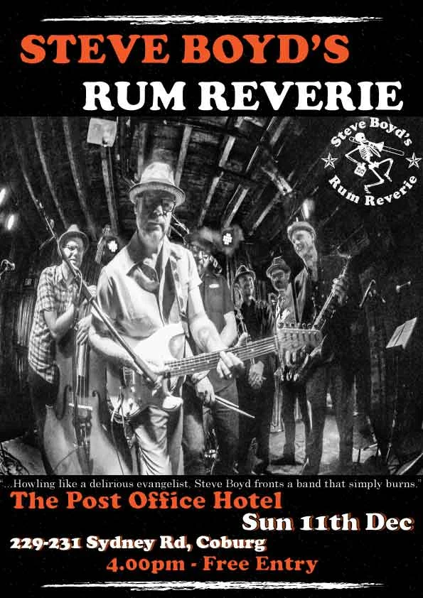 OK Folks! This is our last Melbourne show for the year! And what a year it’s been for SBRR! We will be playing at The Post Office Hotel in Coburg on Sunday arvo 11th December. So come on down and have a few Christmas drinks, maybe even grab one of their great meals they have on the menu and celebrate with us. Show starts at 4.30pm. It would be fantastic to see all our friends that have come to the shows throughout the year to raise a glass