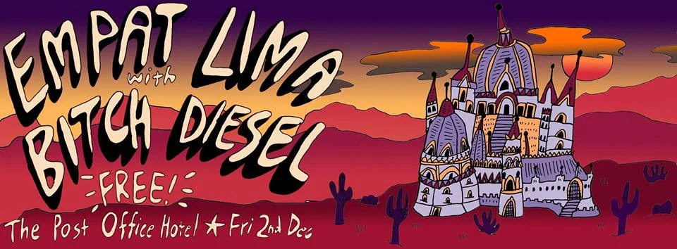 While on hiatus Empat Lima have been having desert dreams, swanning around in suburban palaces and selling fresh fruit and veg. Before the end of the year they will be making this one special appearance for you at The Post Office Hotel.