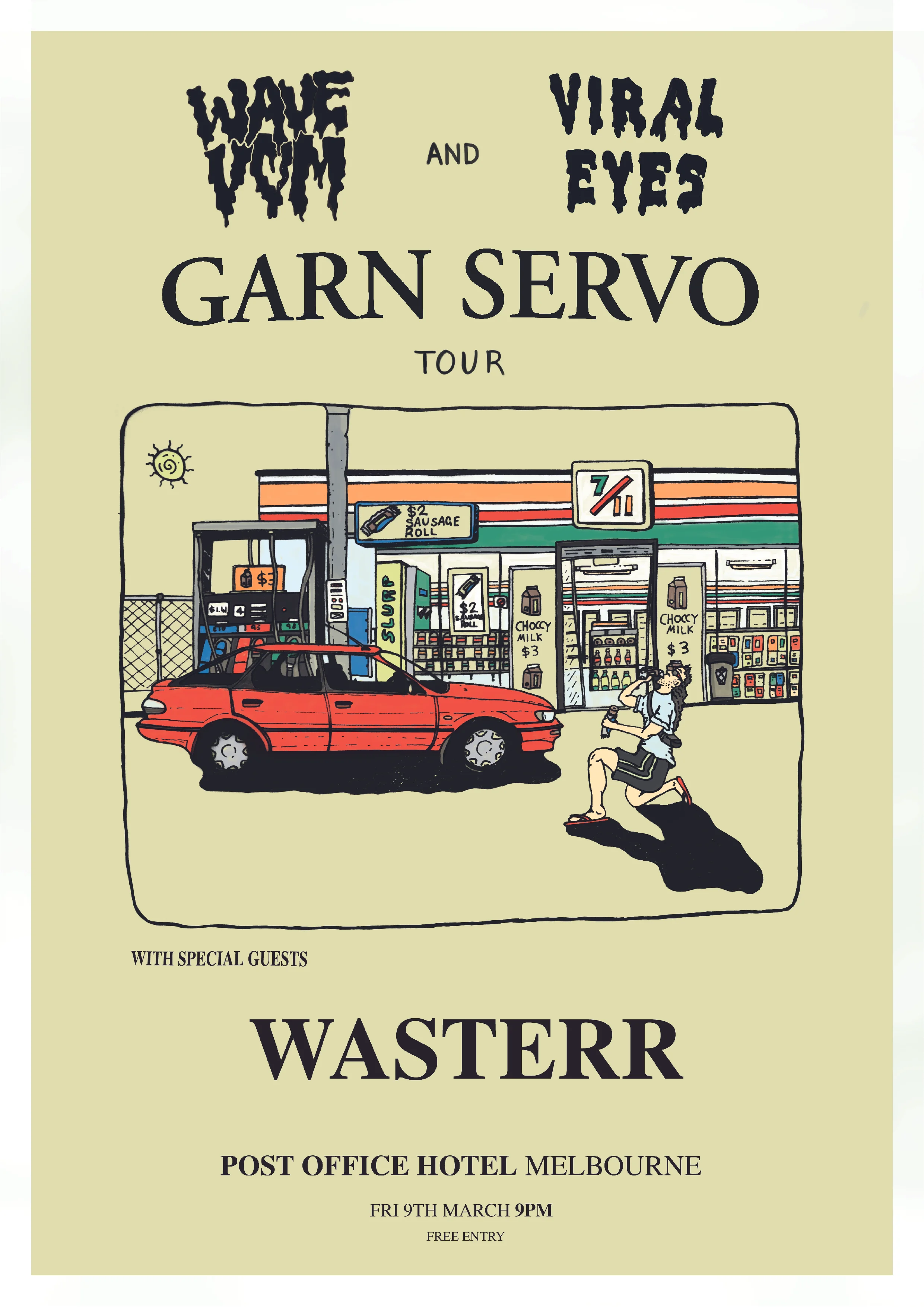 Wavevom and Viral Eyes are heading on a huge lap of the country in a quest to hit every good servo in Australia. Keeping them company on the lineup are local garage rockers wasterr
